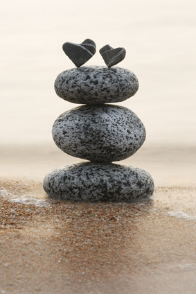 Two hearts atop a pile of stones